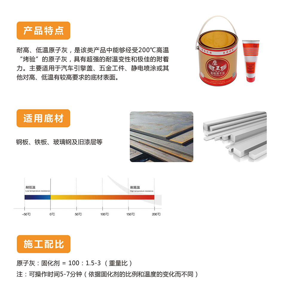 長興寶迪環保科技有限公司生產的耐高、低溫原子灰能夠經受200℃高溫考驗的原子灰具有超強的耐溫變性和很好的附著力。